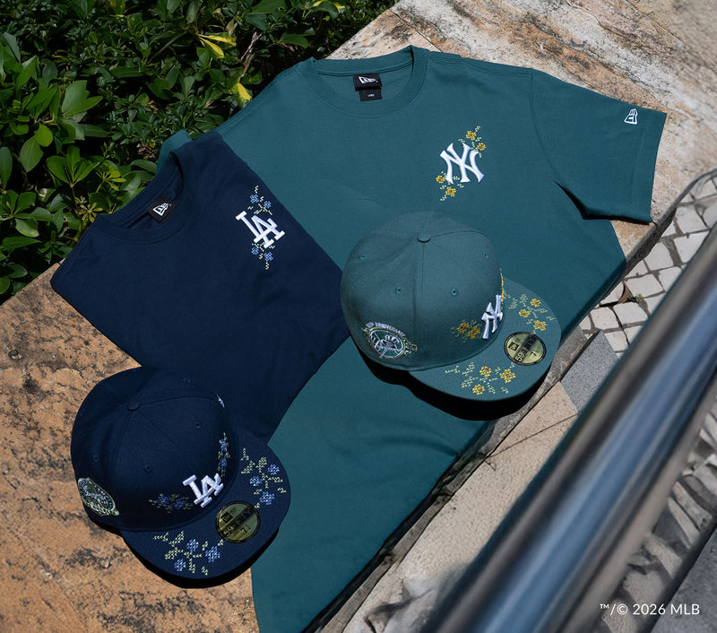 Expressive graphic styles with retro-inspired apparel and 59FIFTY Fitted caps.