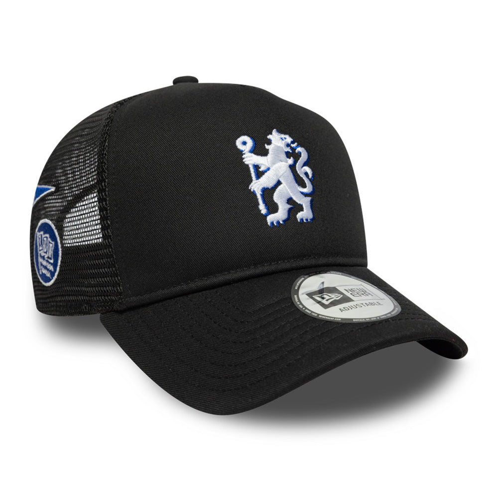 • New Era Chelsea Football Club Patch SP26b Black 9FORTY Trucker Snapback Cap, a stylish sports cap perfect for football fans and everyday sportswear