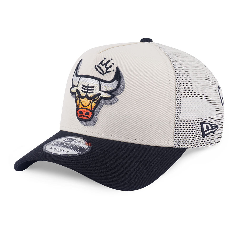• New Era Chicago Bulls League Mix FW25 Chrome White 9FORTY A-Frame Trucker Cap