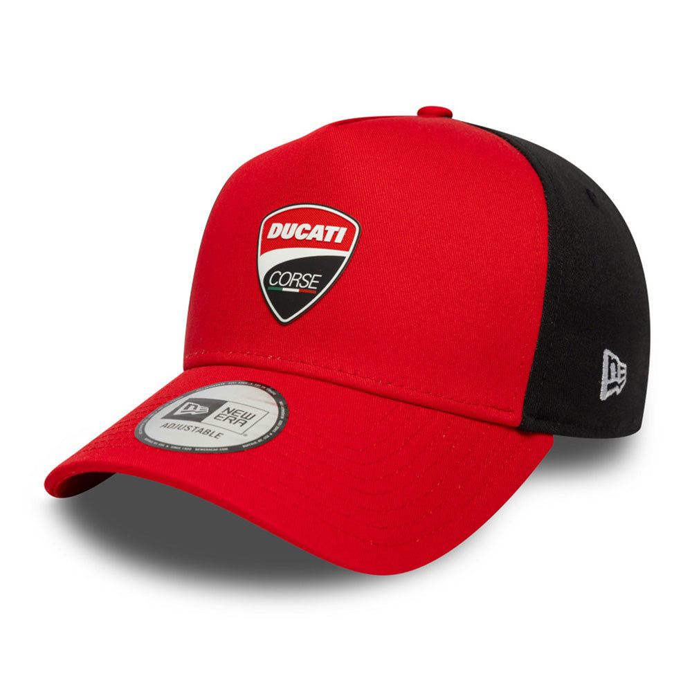 • New Era Ducati Motorsport SP26 Red 9FORTY E-Frame Trucker Snapback Cap, a bold sports cap perfect for motorsport fans and streetwear