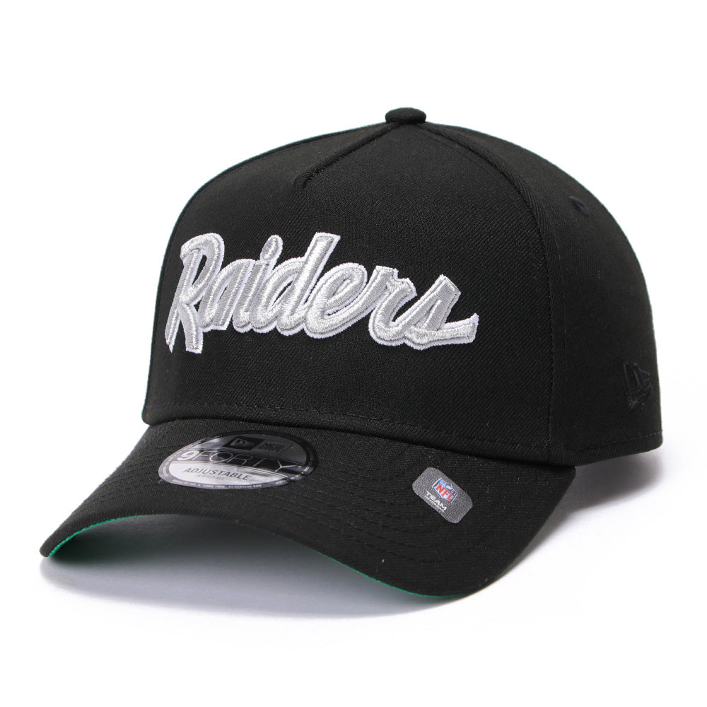 • Black OTC 9FORTY A-Frame snapback cap with clean Las Vegas Raiders script detailing