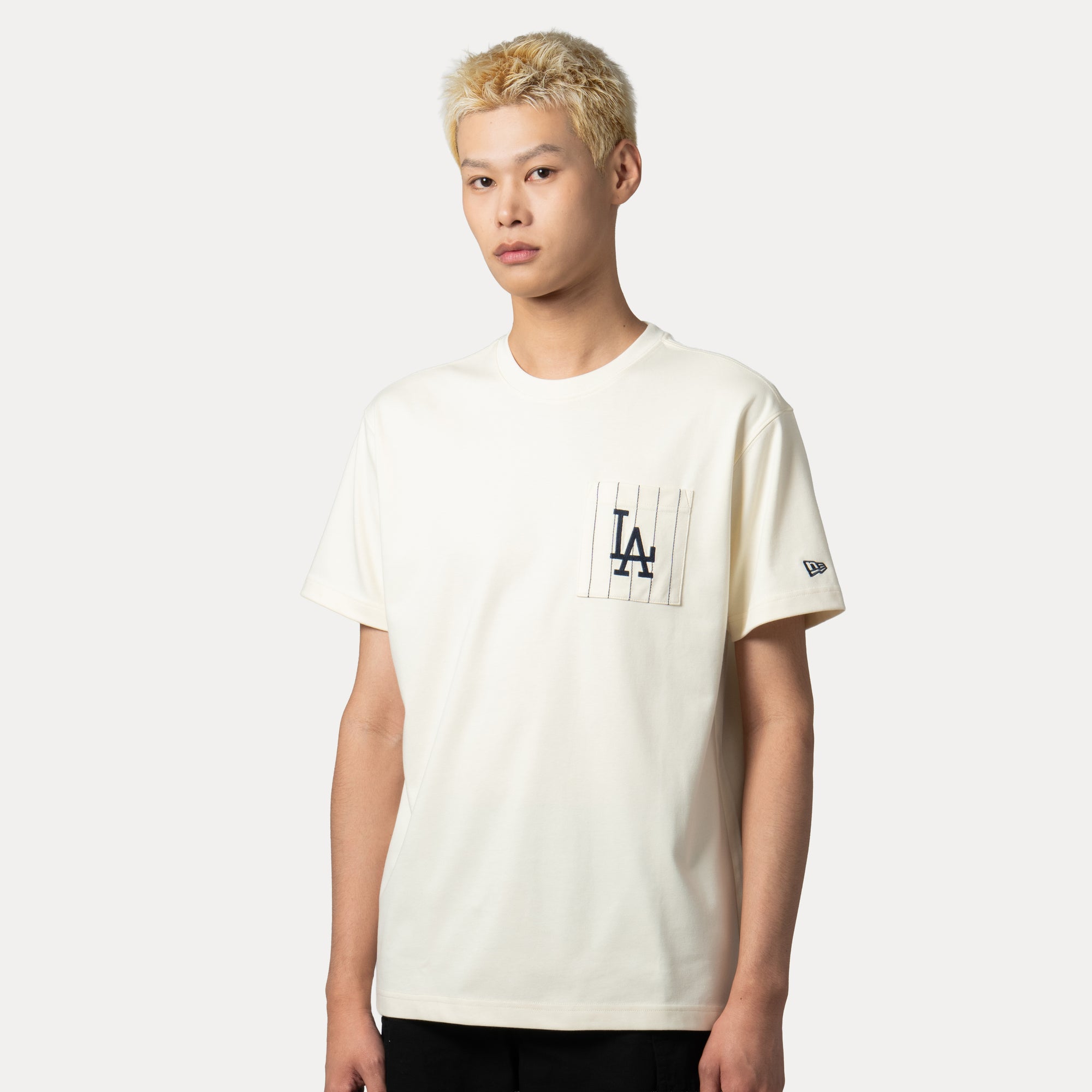 • New Era Los Angeles Dodgers 5950 Pack Stripes Chrome White COOLERA Short Sleeve T Shirt featuring bold stripe detailing and iconic team branding in a clean chrome white colorway.