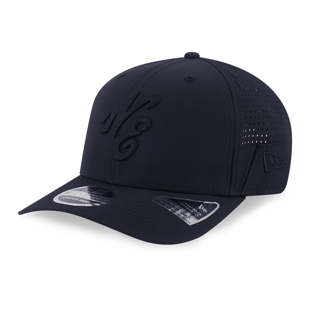 • New Era Script Black 9SEVENTY Stretch Snapback Cap with built-in sunglass holder