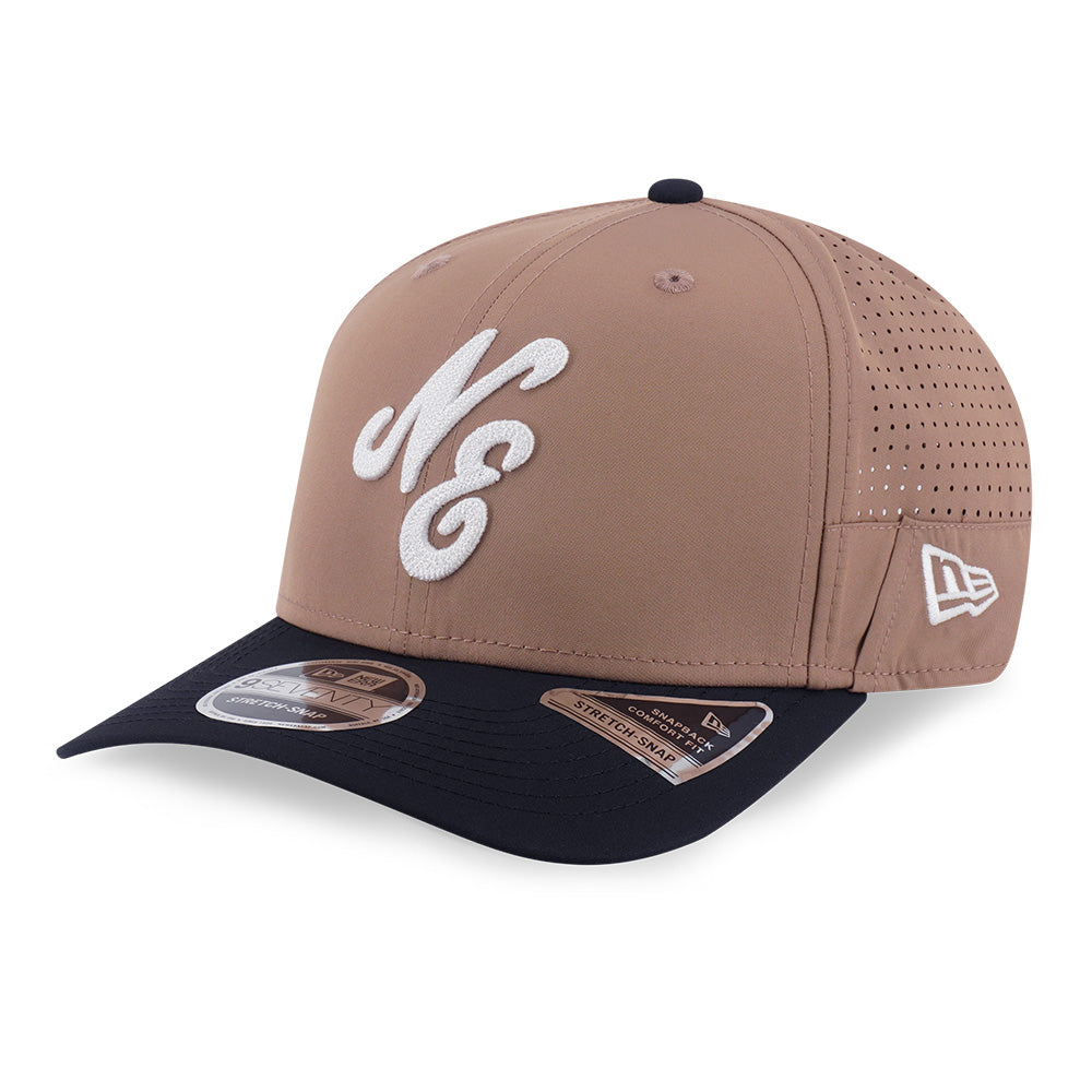 • New Era Script Khaki Black 9SEVENTY Stretch Snapback Cap with built-in sunglass holder