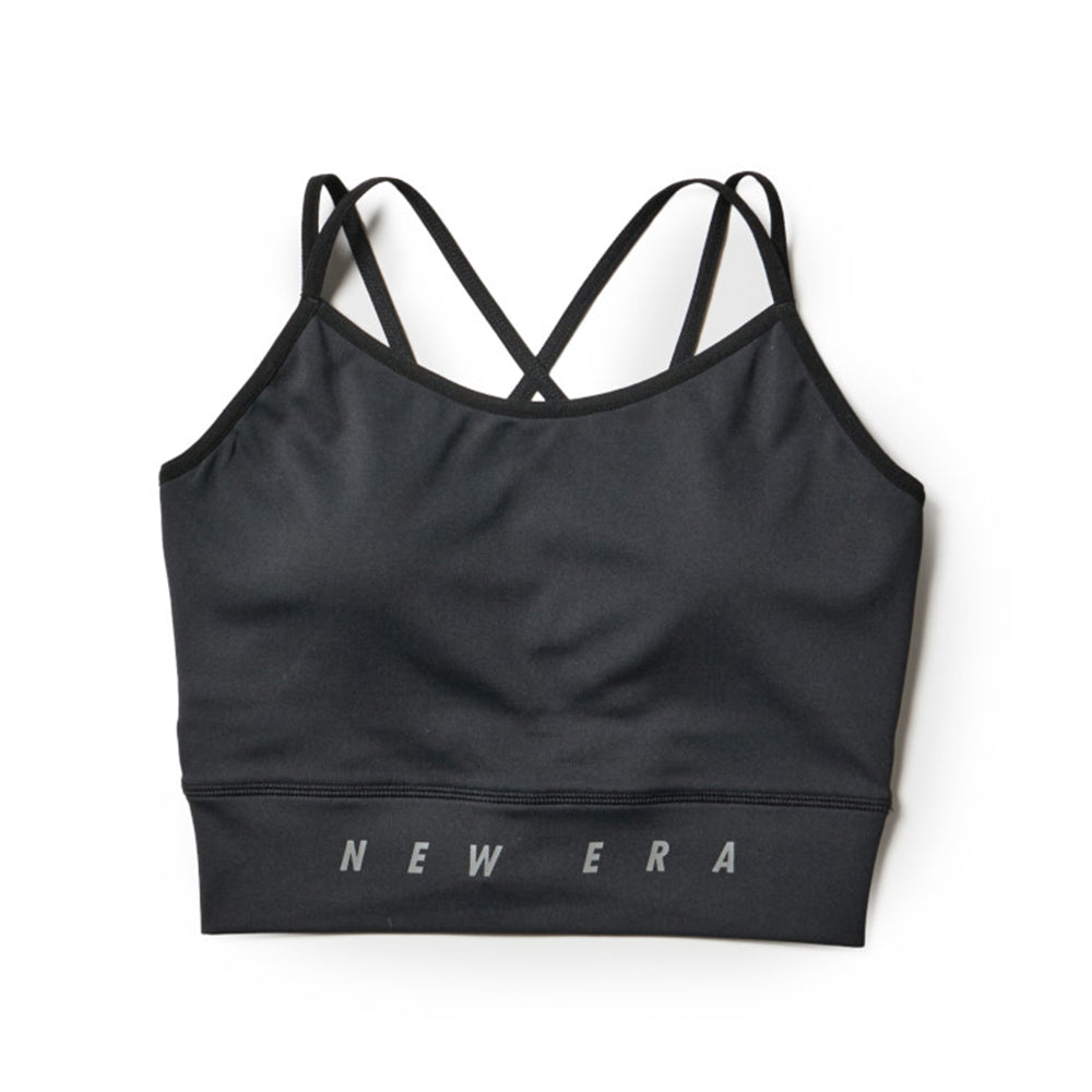 • New Era Wordmark Black X Strap Camisole Bra Top with sleek wordmark detail on a clean black base