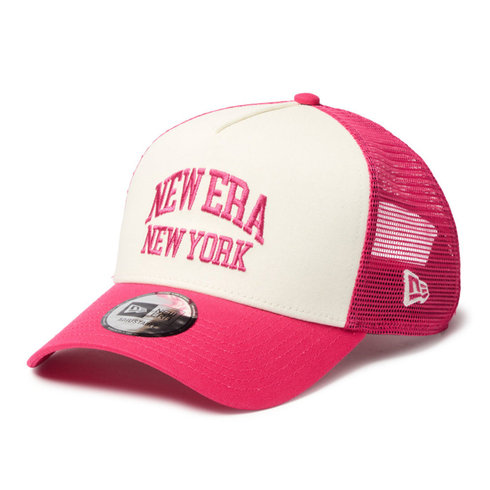 New Era Wordmark NE Collog Cream Red 9FORTY A-Frame Trucker Cap